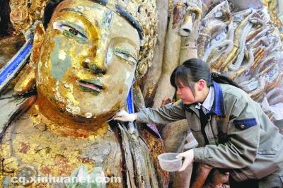 “全國石質文物保護一號工程”大足寶頂千手觀音造像搶救性保護工程于6月13日正式竣工。不同于以往的文物修復,此次千手觀音造像修復團隊將一些國際先進的保護經驗引進修復現場。其中工業X光探傷、紅外熱像探測、激光拉曼測樣、三維視頻顯微鏡觀察等方法和技術,都是中國對大型不可移動石質文物修復的首次應用。